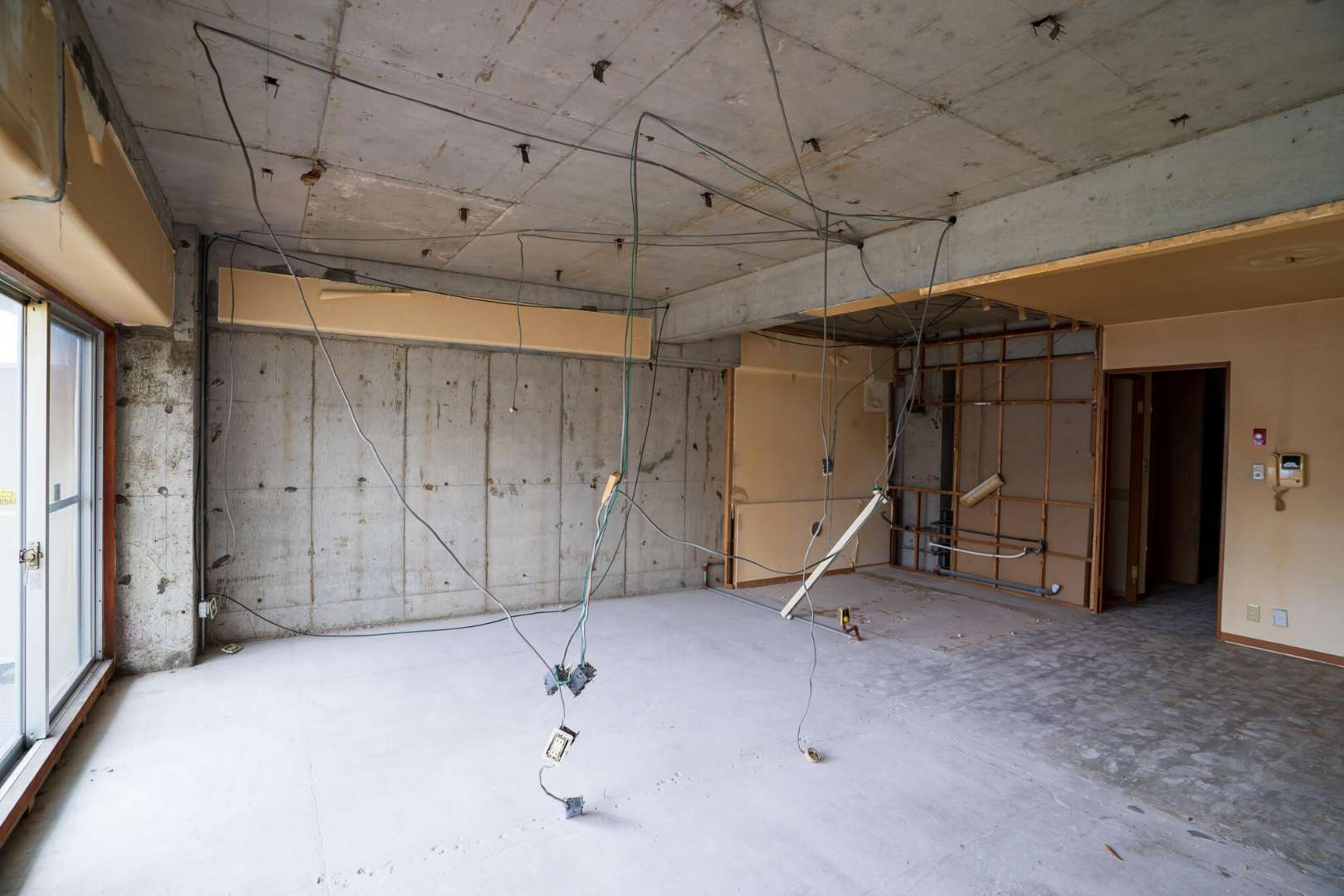また、マンションと戸建てではスケルトン工事の範囲が異なります。マンションでは、床・壁・天井にコンクリートが残っていることが一般的ですが、戸建てではこれらを全て壊して柱と梁のみにしてからリフォーム工事を開始するケースが多く見られます。